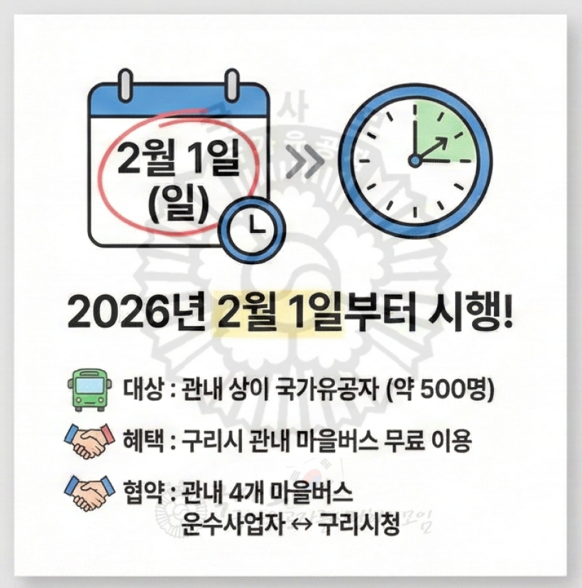 - 구리시 2월1일부터 상이 국가유공자 마을버스 전면 무료! (이용 방법)